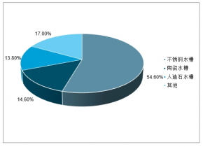 中國水槽行業里最大比例是不銹鋼水槽,達到54.6%,其次是陶瓷水槽為14.6%,人造石水槽為13.8%,其他則為17%