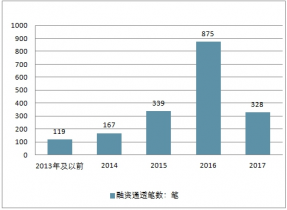 2013-2017年中國(guó)金融科技投融資數(shù)量情況