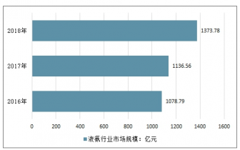 2016-2018年中國液氨行業市場規模走勢