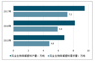 2015-2017年中國完全生物降解塑料行業(yè)產(chǎn)銷量情況