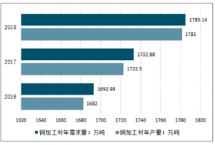 2018 年中國銅加工材年產(chǎn)量達(dá)到1781.00萬噸,較2017年增加58.50萬噸。2018 年中國銅加工材年需求量達(dá)到1785.14萬噸,較2017年增加52.26萬噸。