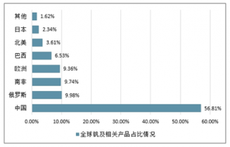 2017年中國約占全球釩產(chǎn)量的57%,俄羅斯、南非、歐洲在全球釩產(chǎn)量占比皆在9%~10%,巴西由于LargoResources公司釩資源開發(fā),占全球釩產(chǎn)量的6.53%,其它國家和地區(qū)占比較小。