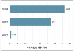 2015-2017年中國食用鹽進口量情況
