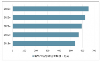 預測2019年我國演出市場總體經濟規(guī)模將達538億元,未來五年(2019-2023)年均復合增長率約為4.92%,并預測在2023年我國演出市場總體經濟規(guī)模將達到652億元。