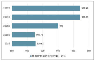 2018-2022年中國塑料軟包裝行業總產值走勢