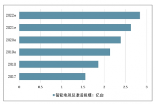 2017-2022年中國智能電視總激活規模趨勢