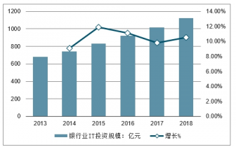 2013-2018年中國(guó)銀行業(yè)IT投資規(guī)模及增長(zhǎng)