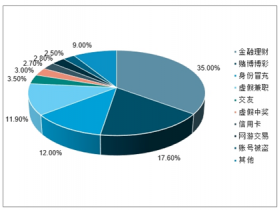 2019年我國(guó)手機(jī)詐騙犯最主要通過金融理財(cái)來實(shí)施,其占比達(dá)35%;其次是賭博博彩、身份冒充、虛假兼分別占比17.6%、12.0%、11.9%。