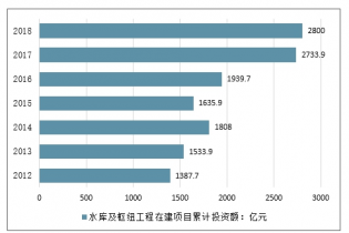2012-2018年中國水庫及樞紐工程在建項目累計投資額走勢