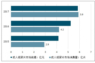 2015-2017年中國(guó)成人紙尿片市場(chǎng)消費(fèi)量及市場(chǎng)規(guī)模情況