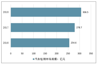 2016-2018年我國(guó)汽車檢測(cè)市場(chǎng)規(guī)模走勢(shì)