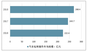 2016-2018年我國(guó)汽車(chē)檢測(cè)服務(wù)市場(chǎng)規(guī)模走勢(shì)