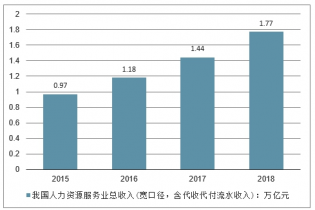 2015-2018年我國人力資源服務業(yè)總收入(寬口徑,含代收代付流水收入)
