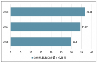 2016-2018年中國(guó)紡織機(jī)械出口金額情況