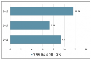 2016-2018年中國石英砂(HS: 25051000 硅砂及石英砂)行業出口量分析