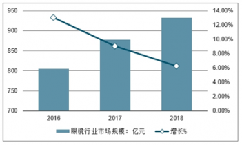 2016-2018年我國(guó)眼鏡行業(yè)市場(chǎng)規(guī)模走勢(shì)