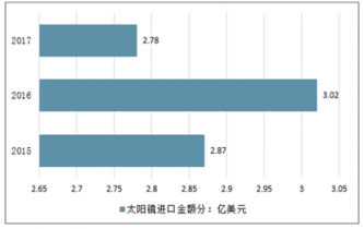 2017年1-12月,我國眼鏡產品(不含儀器設備)進口12.23億美元,同比增加17.06%。從眼鏡產品類別分析:太陽鏡、老視鏡等成鏡進口3.12億美元,同比減少8.45%,占總額的25.53%。