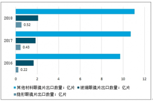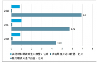 2019年眼鏡片進口量7.79億片,其中:900130隱形眼鏡片進口量0.82億片、900140玻璃制眼鏡片進口量0.07億片、900150其他材料制眼鏡片進口量6.90億片。