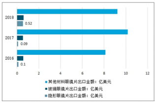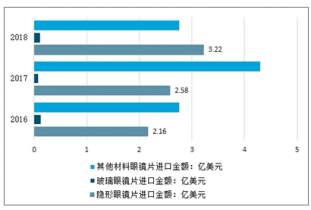 2019年眼鏡片進口額6.09億美元,其中:900130隱形眼鏡片進口額2.76億美元、900140玻璃制眼鏡片進口額0.11億美元、900150其他材料制眼鏡片進口額3.22億美元。