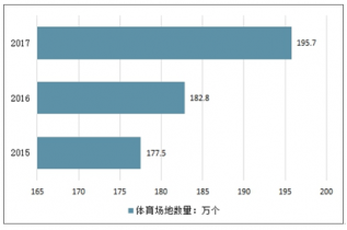 2015-2017年中國(guó)體育場(chǎng)地?cái)?shù)量情況