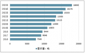 2016-2025年中國高阻隔芳香族透明尼龍(MXD6)行業市場需求量情況