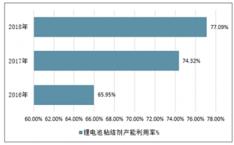 2016-2018年中國鋰電池粘結(jié)劑產(chǎn)能利用率情況