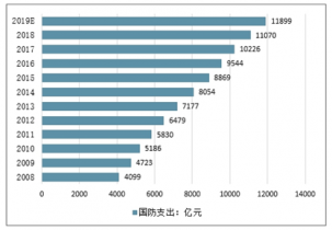 我國國防支出占GDP比重遠小于發達國家。根據2019年政府工作報告,2019年國防支出預算11899億元,同比增長約7.5%,將重點支持國防和軍隊改革,全面推進國防和軍隊現代化建設。整體增速雖然略微下降但仍然高于GDP增速預期,根據過往經驗,軍費開支呈結構性的前緊后松,再加上軍隊改革帶來的減員增效,猜測在“十三五”的最后兩年武器裝備方面采購的費用仍將穩定增長。從國防支出占GDP比重數據來看,2008-2019年中國國防費用占GDP比例基本在1.3%左右,根據數據,中國國防支出占GDP比重遠低于世界平均水平2.6%,也遠低于俄羅斯和美國平均水平4%。