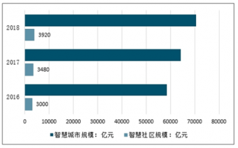 2016-2018年中國智慧社區(qū)規(guī)模及智慧城市規(guī)模情況