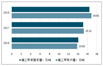 2016-2018年偏三甲苯產需量情況