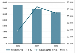 2016-2018年中國發電機組產量及電機行業銷售毛利率