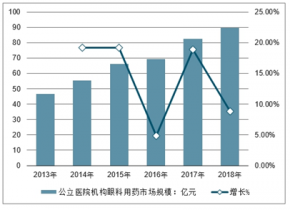 2013-2018年中國公立醫院機構眼科用藥市場規模及增長走勢