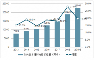 2013-2019年全國農(nóng)產(chǎn)品冷鏈物流總需求量趨勢