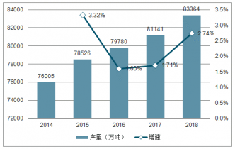 2018年中國蔬菜的總體供應(yīng)量充足,消費者需求穩(wěn)步增長,預(yù)計2018年我國蔬菜產(chǎn)量為83364萬噸。