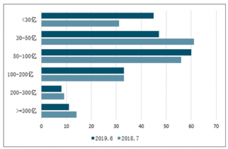 從市值分布情況看,2019年小于30億的小市值個股占比明顯提升,30億以上標的整體下降,其中300億以上和30-50億的兩個區(qū)間減少約20%。這一方面表明2019年行業(yè)回調程度強于去年,另一方面也表明資金面對小票的喜好性進一步降低。