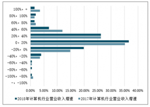 2017、2018年計(jì)算機(jī)行業(yè)營(yíng)業(yè)收入增速分布