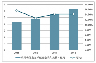 2015-2018年中國(guó)軟件和信息技術(shù)服務(wù)業(yè)收入規(guī)模及增長(zhǎng)走勢(shì)