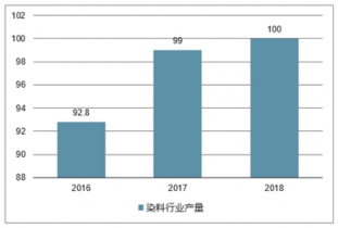 2016-2018年我國染料行業產量情況