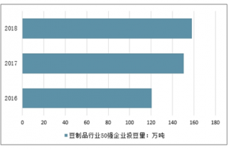 2016-2018年中國豆制品行業(yè)50強(qiáng)企業(yè)投豆量情況