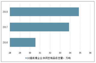 2016-2018年中國50強規模企業休閑豆制品投豆量情況
