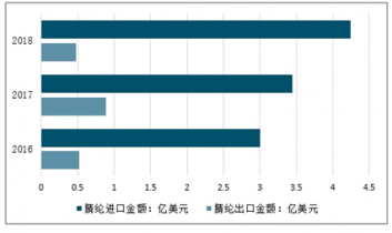 2016-2018年腈綸纖維進(jìn)出口金額情況