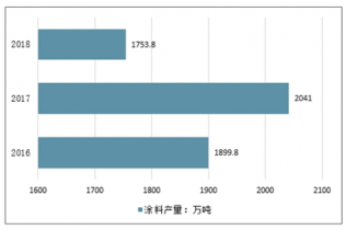 2016-2018年中國(guó)涂料產(chǎn)量走勢(shì)