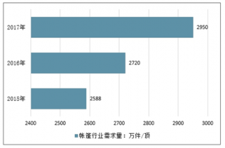 2015-2017年中國帳篷行業產量情況