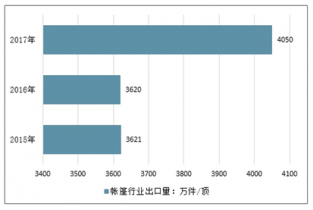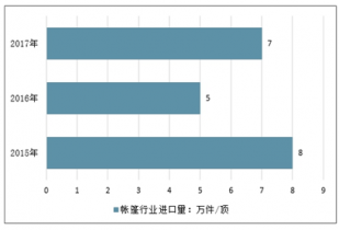 2017年我國帳篷行業進口量約8萬件/頂,出口量約4050萬件/頂。