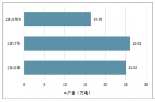 2016-2018年9月我國鉬精礦產(chǎn)量情況