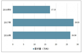 2016-2018年9月我國鉬精礦需求量情況