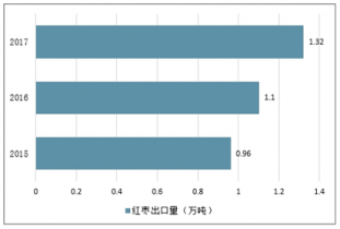 2015-2017年中國(guó)紅棗出口數(shù)量情況
