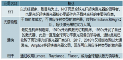 我國超快激光器市場主要被NKT、光譜物理、通快、相干等海外激光器廠商主導,隨著超快激光需求擴大、技術不斷突破與成熟,國內越來越多的企業紛紛布局,發展迅速,進口替代的序幕正在拉開。