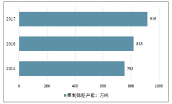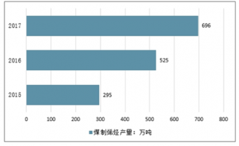 2015-2017年中國(guó)煤制烯烴產(chǎn)量情況