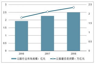 2016-2018年我國公路行業(yè)市場規(guī)模及公路建設(shè)投資額