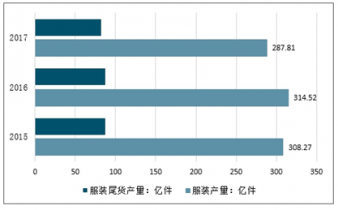 2015-2017年中國(guó)服裝產(chǎn)量及尾貨產(chǎn)量情況